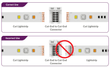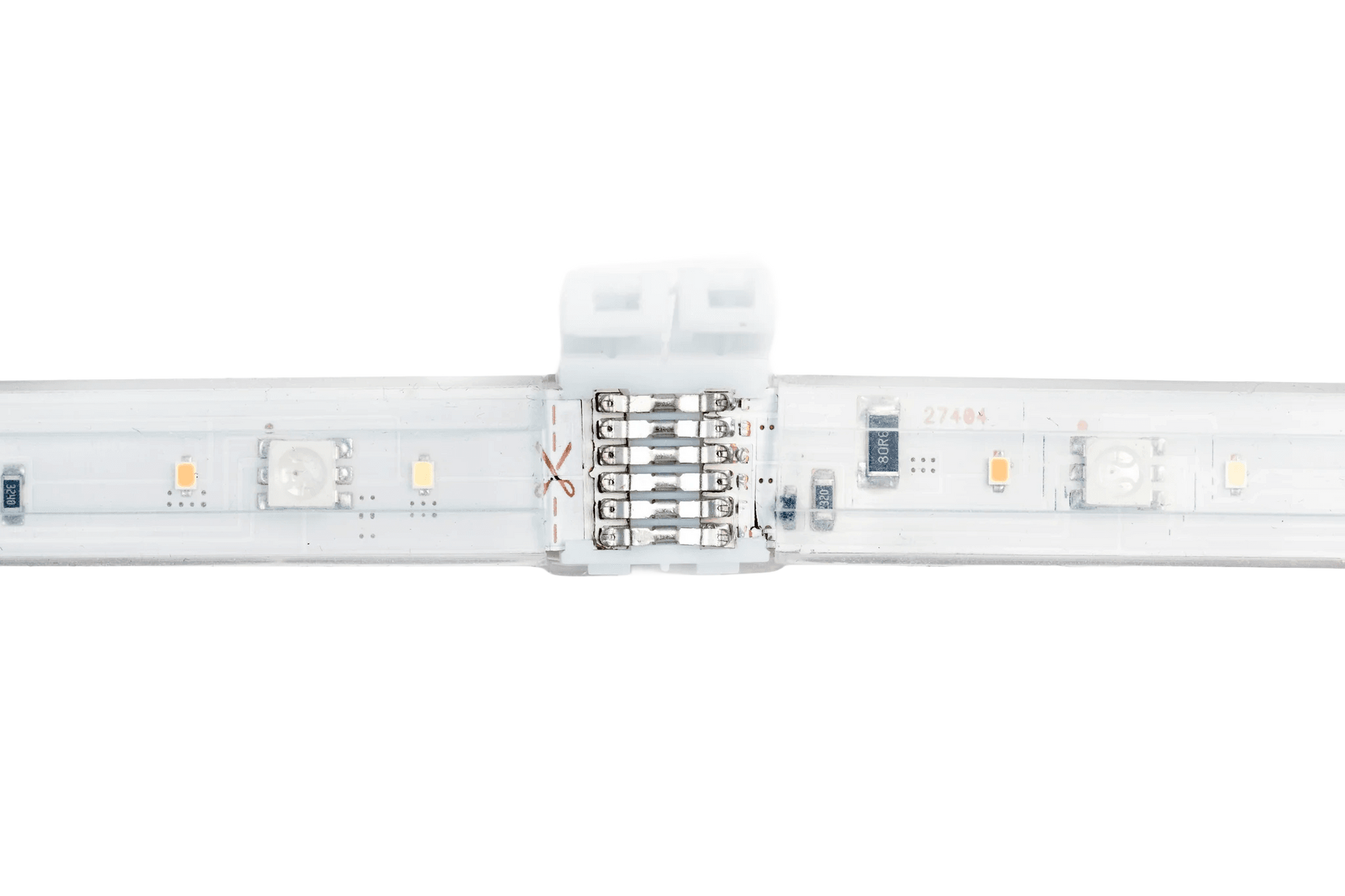 Remember: Cut lightstrips connect only to cut-end connectors and 6-pin ends can only connect to 6-pin connectors. Cut lightstrips cannot connect to a 6-pin connector.