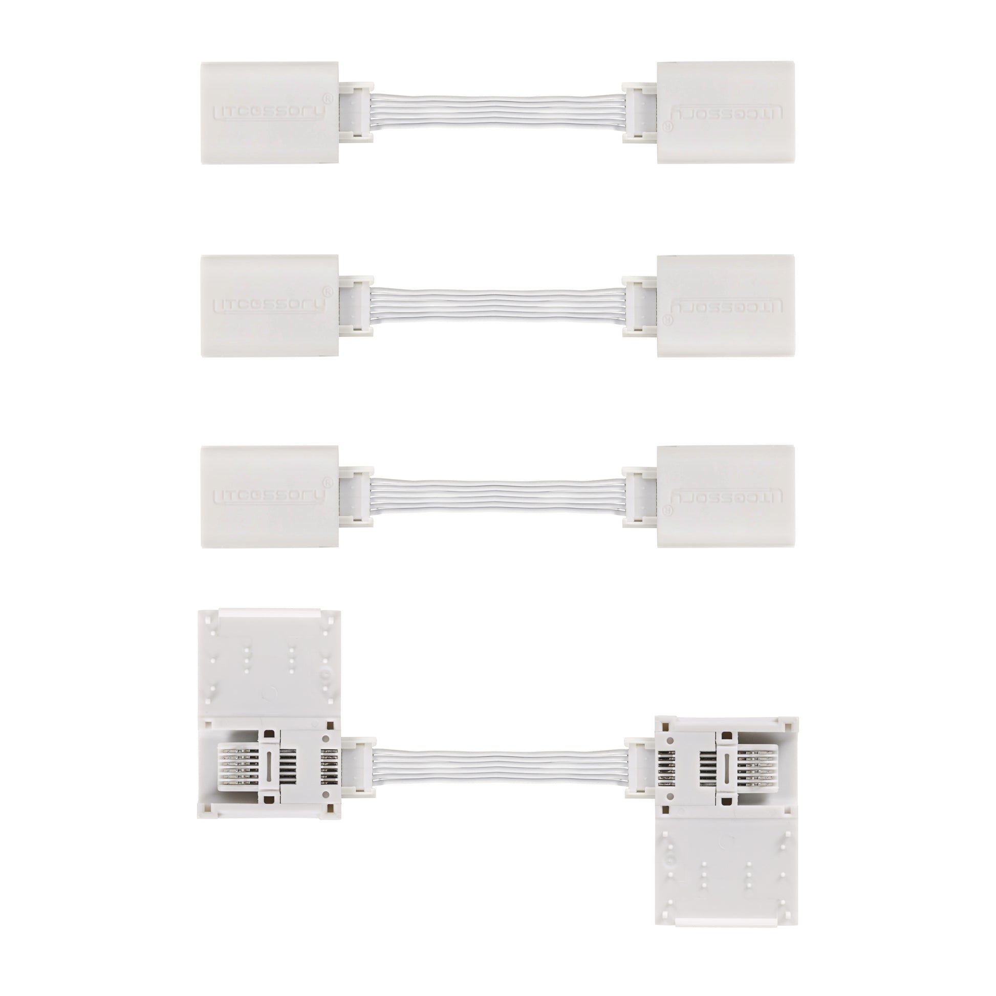 Philips Hue is great, but it only allows for a single, continuous lightstrip run. Litcessory products allow for several! This Cut-End to Cut-End Extension Connector, specifically designed for the Philips Hue Lightstrip system, enables you to connect one cut light directly to another cut lightstrip. No more wasting costly lightstrip pieces! You can also use this connector to create corners for your lightstrip run, allowing for more design flexibility than ever before! Our cables are flexible and flat, which makes them inconspicuous - perfect for designing your ideal lighting setup!