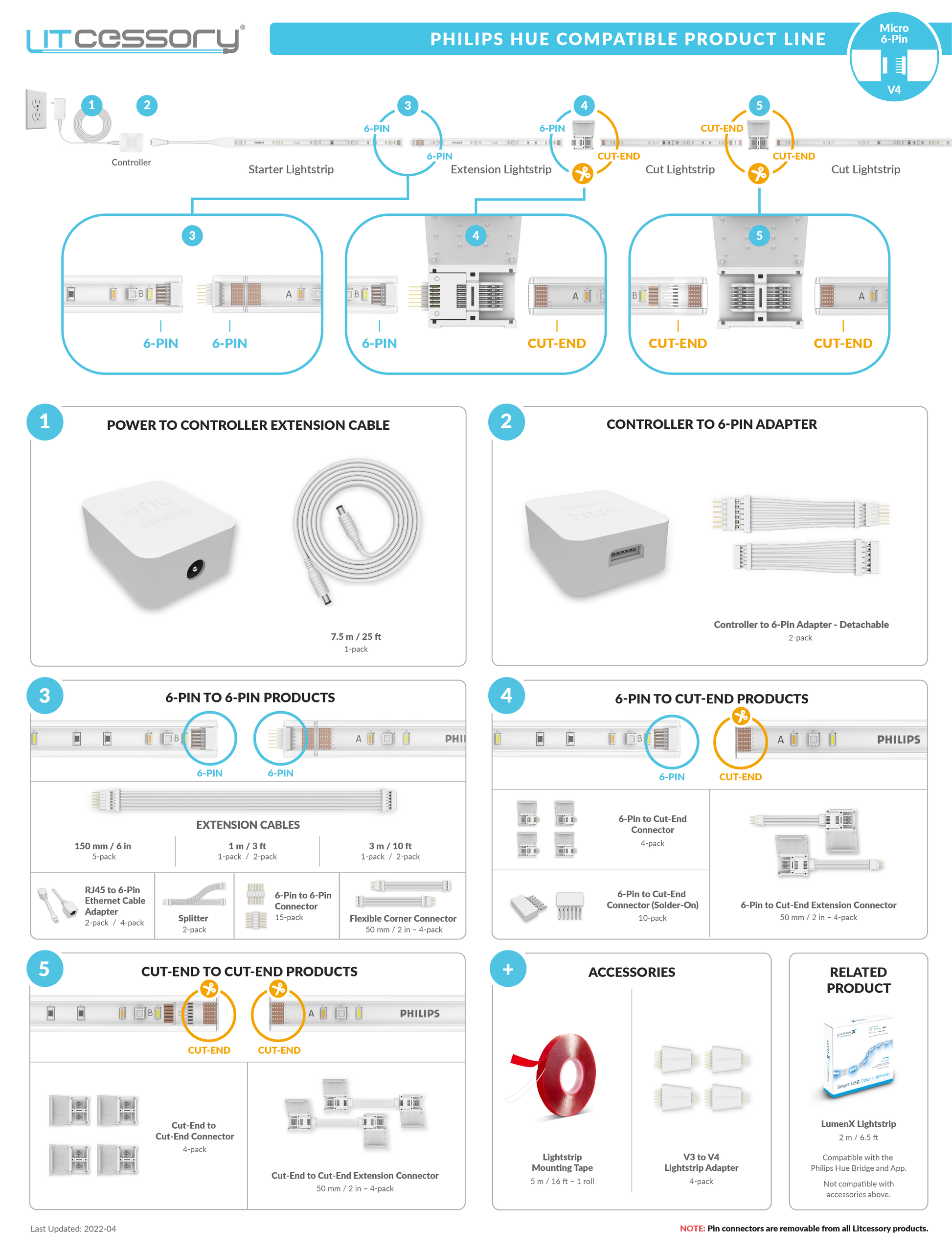 No, Litcessory products can't be used with the LumenX lightstrip. The connectors with the LumenX strip are included